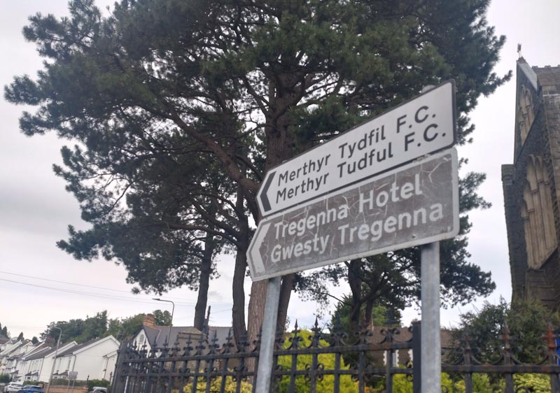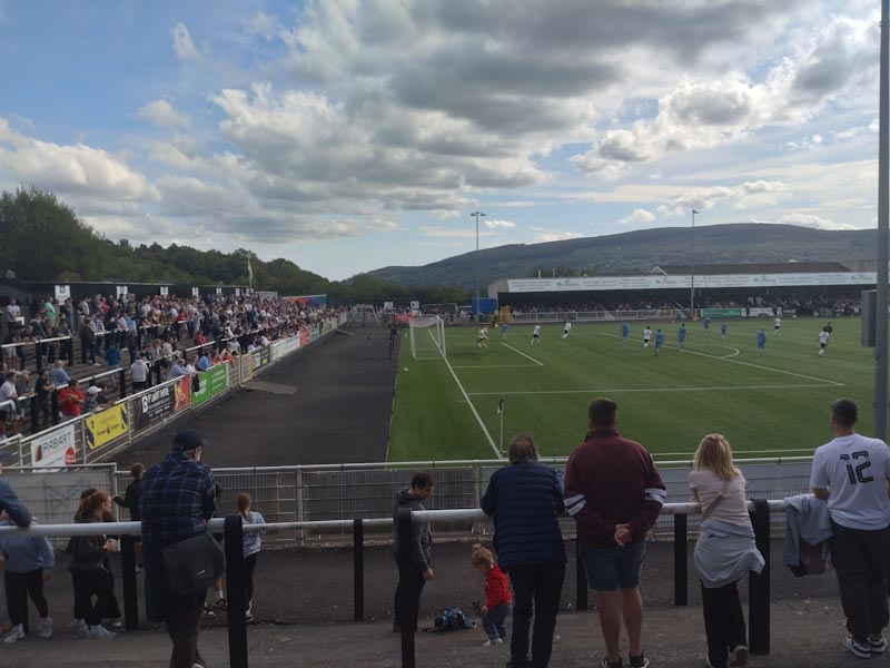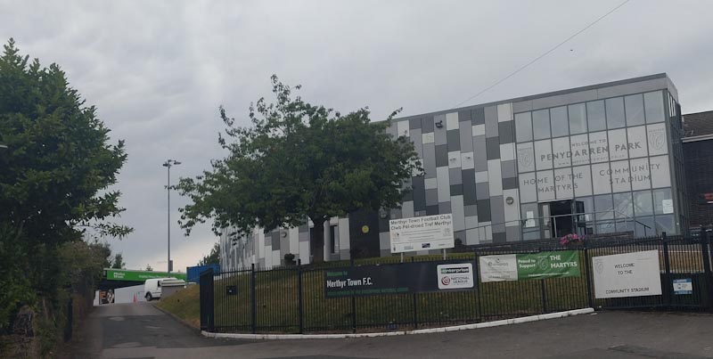 Merthyr Tydfil railway station is 15-20 minutes walk from the stadium and is around an hour on Transport for Wales valleys services from Cardiff Central and Cardiff Queen Street stations. To reach the ground, leave the station and walk through the Beacons shopping aracade (to the left of the Tesco store at the end of the platform). Turn right into the mostly pedestrianised High Street and head through the town centre, walking straight ahead. After passing the Tiger Inn on the right, at the very end of High Street, turn left at the roundabout and quickly cross the zebra crossing. Straight ahead of you is a flight of steps, next to the large, disused YMCA building. At the top of the steps, turn right into Park Terrace and at the end of this road is Penydarren Park and the stadium just up ahead of you. For more, go to National Rail planner