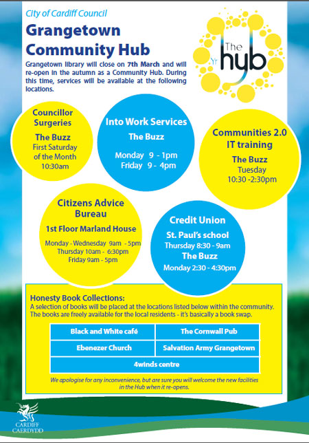 the library - its temporary office is at Bayden Scout Hall, Ferry Road, Grangetown,