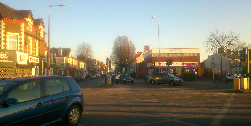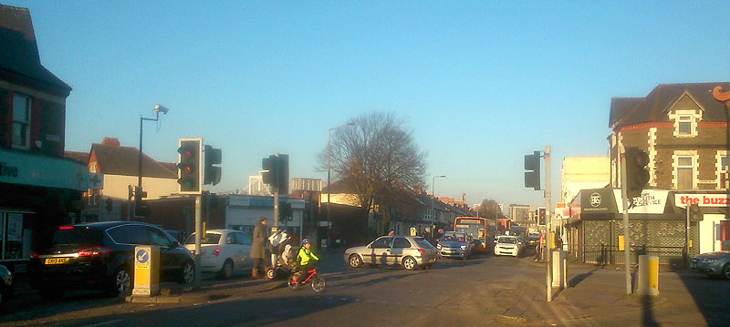 the busy intersection of Penarth Road, Clare Road, Corporation Road and