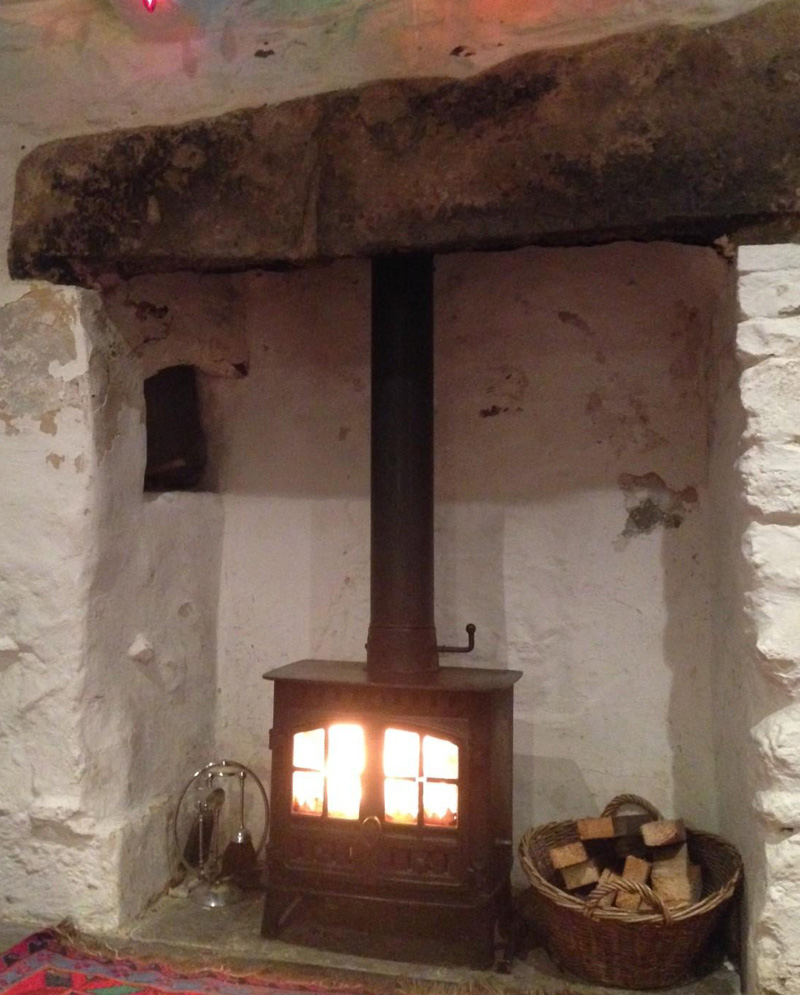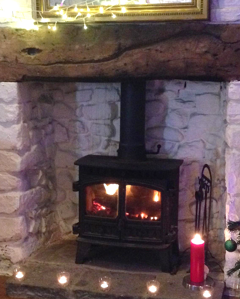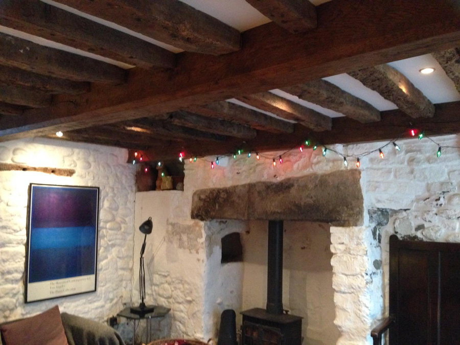 Farm and two inglenook fireplaces. The larger downstairs fireplace has a huge stone lintel and bread oven