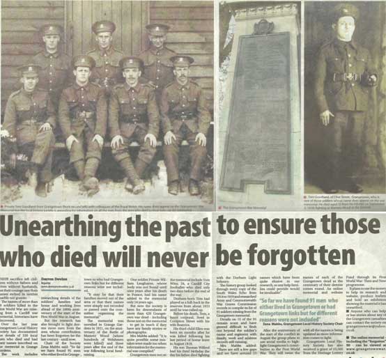 war memorial project appeared in the South Wales Echo on March 19th 2014.