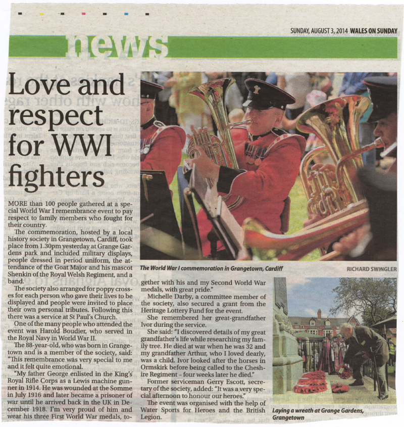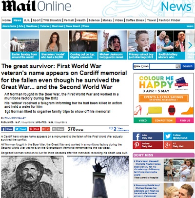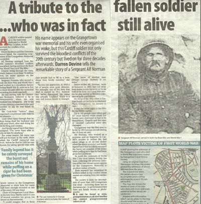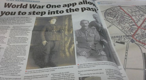 There was a double-page spread on our World War One memorial walk phone app in the South Wales Echo on February 11th 2015 and also in Wales Online