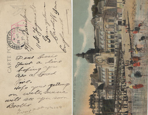 A postcard sent to his sister Doris, hoping she was a "good girl" and "getting on with music well."